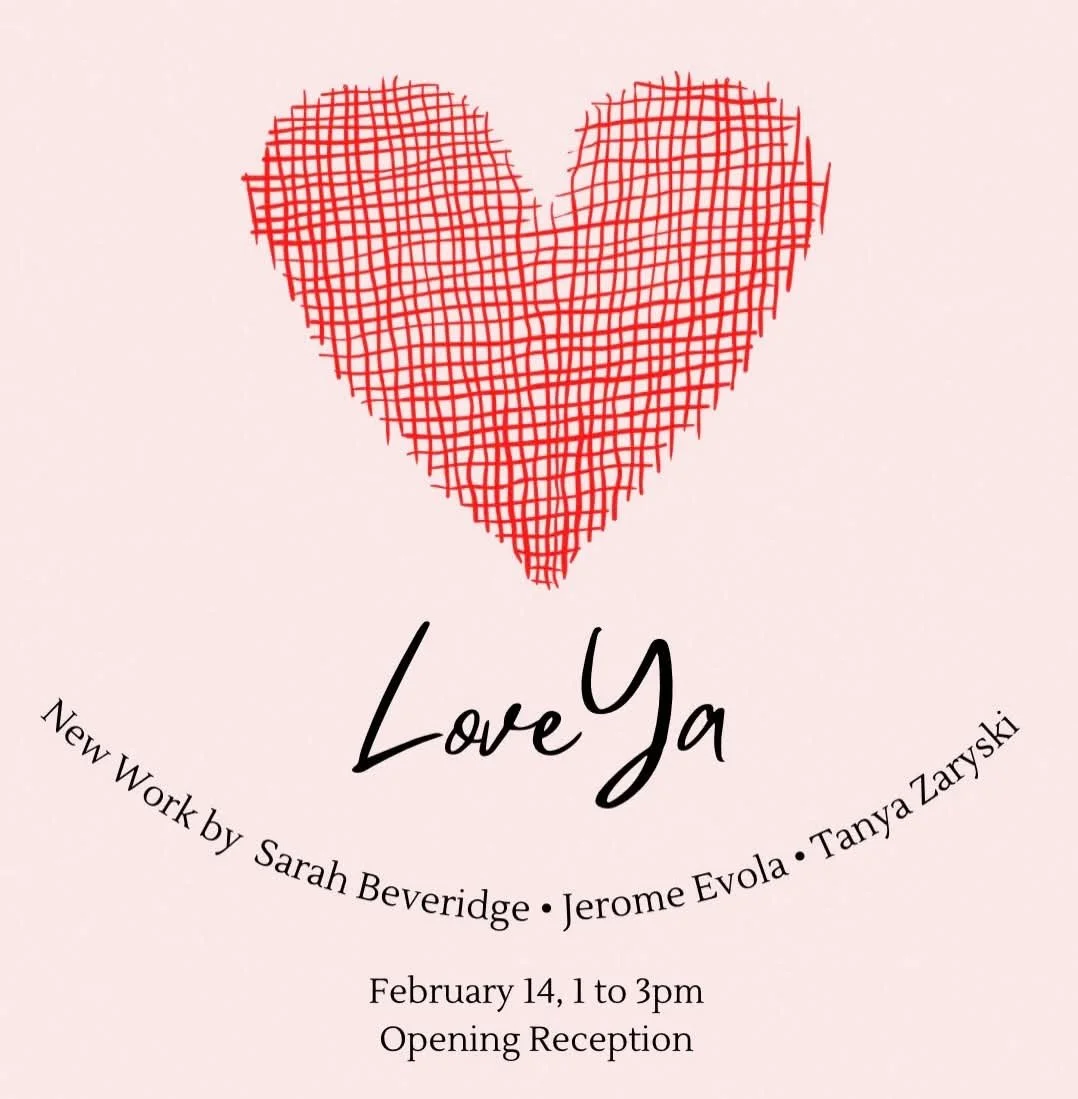 Join us on Valentine's Day in the afternoon for the opening of “Love Ya”, featuring works by Sarah Beveridge, Tanya Zaryski and Jerome Evola. This group exhibition will run into spring. See why/what we love to paint.